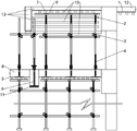 7.根据权利要求1所述的一种高低跨双层现浇结构模架,其特征在于:所述的支护模架上部设有横架(9)和木方(10),悬挑架的模架立杆(3)通过可调托座(2)和横架(9)安装在高跨悬挑结构模板(7)底部。