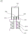 第三驱动件323、第四驱动件324及第五驱动件325可以是气缸。第三驱动件323及第四驱动件324安装于第二驱动件322的驱动端。因此,可在第二驱动件322的驱动下沿第二方向进行升降。第五驱动件325安装于第三驱动件323 的驱动端并可在第三驱动件323的带动下沿第一方向移动。因此,第三驱动件 323动作可调节第五驱动件325与第四驱动件324之间的距离。