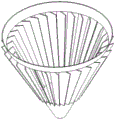 进一步的,如图3-5所示,所述锥轮包括锥桶和叶片,所述叶片设置在锥桶侧壁且与所述锥桶侧壁呈角度排列,所述锥桶较细一端封闭。根据本实用新型的一个实施例,所述锥轮较粗一端为上端,直径为450mm与所述筒体固定连接;所述锥轮的锥度为0.72,所述叶片为20片,所述叶片转角为30°。