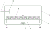 2. The utility model discloses, through placing the cooperation setting between board, ultraviolet lamp stand and the ultraviolet lamp, can make this device when using, medical staff puts into the inside of placing the board with the operation utensil, later starts ultraviolet lamp, because the ultraviolet ray has the sterile effect of disinfecting for ultraviolet lamp can be to the sterile effect of disinfecting of the inside operation utensil of shallow body.