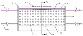 And a plastic metal strip 18 is arranged in the middle of the first protection strip 8.