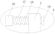 图中:第一位移机构1、垫块2、第一转动安装件3、驱动电机4、横轴机构5、第一夹紧套6、凸架7、螺纹杆8、连接轴9、横轴10、圆环套11、第二转动安装件12、横板13、电动伸缩杆14、第二位移机构15、第二夹紧套16、弹簧17、横杆18、挡块19。
