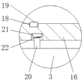 In the figure: the device comprises an installation bottom plate 1, a shell 2, a first box door 3, a fixed block 4, a first baffle 5, a connecting lock 6, a first handle 7, a control main body 8, a first sliding block 9, a camera main body 10, a second handle 11, a sliding chute 12, a second sliding block 13, a second baffle 14, an electric telescopic rod 15, a second box door 16, a connecting plate 17, a data switching socket 18, a memory card 19, a bulge 20, a travel switch 21 and a groove 22.