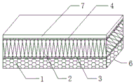 In the figure: 1. An insulating layer I; 2. A heat-insulating layer II; 3. An adhesive layer I; 4. An adhesive layer II; 5. a water-resistant coating; 6. an interfacial layer; 7. and (6) a finishing layer.