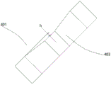 Further, the height of the middle part of the length direction of the upper end surface of the outer circle blanking knife 401 is lower than the height of the two ends of the length direction of the upper end surface of the outer circle blanking knife 401; the height difference h between the middle part of the length direction of the upper end face of the outer circle blanking knife 401 and the two ends of the length direction of the upper end face of the outer circle blanking knife 401 is 3-5 mm.
