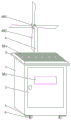 Furthermore, the support frame is fixedly connected with the box body through bolts, the wind driven generator is fixedly connected with the support frame through bolts, the fan blades are connected with the rotating shaft of the wind driven generator, the wind and light complementation device is connected with the wind driven generator through wires, the wind and light complementation device is also connected with the solar panel through wires, and the storage battery is connected with the wind and light complementation device through wires.