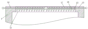 5.根据权利要求1所述的一种空气过滤净化装置,其特征在于:所述风向调节机构(13)包括两个调节杆(14)、固定杆(15)与导风片(16),两个所述调节杆(14)均与壳体(1)相滑动插接,所述调节杆(14)伸入出气口(12)内腔的一端与导风片(16)相固接,所述固定杆(15)与出气口(12)的侧壁相固接,所述导风片(16)与固定杆(15)的侧壁相铰接。