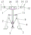 Furthermore, one end of the outer side of the rotating shaft 16 extends out of the thimble tube 15 and is provided with a rotating disc, a locking bolt is arranged at the non-circle center of the rotating disc, and the rotating disc and the rotating shaft 16 are positioned through the locking bolt, so that the phenomenon that the clamping plate is loosened due to error rotation is prevented.