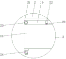 其中:1、机架;2、第一固定条;3、第二固定条;4、轴承座;5、滚筒;6、输送带;7、伺服电机;8、齿轮;9、链条;10、旋转台;11、液压杆;12、第一移动座;13、凹槽;14、步进电机;15、环形滑槽;16、万向滚珠;17、滚轮;18、第二移动座;19、固定块;20、固定轴;21、活动块;22、支撑柱;23、橡胶块;24、万向滚轮。