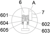 4. The chip suction and impurity removal device for shaving board processing according to claim 1, wherein: the dustproof cover is characterized in that a groove (601) is formed in the bottom end of the dustproof cover (6), a second spring (602) is fixedly connected to one side of the inner wall of the groove (601), a pressing rod (603) is fixedly connected to the other end of the second spring (602), sliding grooves (604) are formed in two sides of the groove (601), sliding blocks (605) are fixedly connected to two sides of the pressing rod (603), and the sliding grooves (604) and the sliding blocks (605) form sliding connection.
