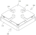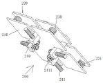 Referring to fig. 1-2, the present invention relates to a fixing structure for a flexible production line stamping module, which comprises a carrying mechanism 100, a fixing mechanism 200 is disposed above the carrying mechanism 100 for fixing a stamping die, and the fixing mechanism 200 is movably connected to the carrying mechanism 100 for facilitating the installation and detachment of the fixing mechanism 200 and the carrying mechanism 100, the carrying mechanism 100 comprises a rectangular box 110 for placing a gear plate 112 and a column gear 2411, four corners of the bottom of the inner side of the rectangular box 110 are fixedly connected with supporting columns 111 for supporting a substrate 210, a gear plate 112 is rotatably connected to the central position of the bottom of the inner side of the rectangular box 110 for driving the column gear 2411 to rotate, a motor 120 is detachably connected to the central position of the bottom of the outer side of the rectangular box 110, and an output shaft 121 of the motor 120 penetrates through the rectangular box 110 to be connected to the bottom of the gear plate 112, by starting the motor 120, so that the gear plate 112 is driven to rotate forward and backward by the forward and backward rotation of the output shaft 121.