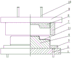 1.一种盒形零件反向局部成型装置,至少包括压力机,其特征在于:还包括用于成形的反向成型装置和用于校形的校形装置;所述的反向成型装置和校形装置分别连接在压力机上;所述的反向成型装置包括反向成型凸模(6)和与之匹配的反向成型下模;所述校形装置包括校形上模和与之匹配的校形下模,且反向成型下模与校形下模结构相同。