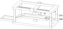 Referring to fig. 1 to 3, the collecting device 500 further includes a collecting box 580, a surface of one side of the collecting box 580 is connected to one end of the base plate 110, the lifting cylinder 510 is used for lifting and lowering the devices thereon, the mounting rail 530 is used for mounting the devices to be dedusted, the telescopic cylinder 550 is used for controlling the devices thereon to be telescopic, the dedusting brush 570 is used for cleaning the surface of the dedusted devices, and the collecting box 580 collects the cleaned dust.