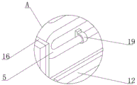The cooling pipe 5 is fixedly installed on the inner side wall of the box body 1 through a fixing sleeve 19. The cooling pipe 5 extends in a snake shape, the area of the box body 1 is increased, and the cooling effect is enhanced.