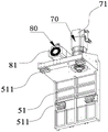 Further, referring to fig. 7 to 8, as a specific embodiment of the laser cutting machine provided by the present application, the mounting seat 52 is provided with a Z-axis guide rail 523 extending along the Z-axis direction, the Y-axis sliding seat 51 is provided with a Z-axis sliding block 55 for being matched with the Z-axis guide rail 523, and through the matching between the Z-axis guide rail 523 and the Z-axis sliding block 55, the mounting seat 52 can slide along the Z-axis guide rail 523, and has a better operation guiding function and high movement precision. The Z-axis driving mechanism 80 includes a Z-axis driving motor 81 disposed on the Y-axis slide 51, a Z-axis gear (not shown) in transmission connection with the Z-axis driving motor 81, and a Z-axis rack 82 extending along the Z-axis direction and disposed on the mounting base 52 and engaged with the Z-axis gear. Through the adoption of the gear and rack transmission mode, the transmission is more accurate. It should be noted that the arrangement of the Z-axis driving mechanism 80 is not limited to this, for example, in other embodiments of the present application, the driving may be performed by a linear motor or an air cylinder, and the transmission may be performed by a screw rod.