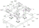 参阅图1、3,连接机构300还包括连接架330、连接杆340以及定位柱350,四个连接架330分别安装于四个卡框310周侧面,四个定位柱350分别安装于四个连接架330内部,两个连接杆340两端分别与四个定位柱350滑动配合,定位柱350与连接杆340之间滑动配合来实现水平位置上连接杆340的稳定放置。