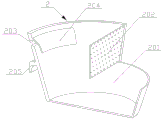 The mosquito inlet structure arranged on the side wall of the water containing basin 2 is positioned on the side wall of the upper part, the mosquito inlet structure comprises a second mosquito inlet 203 and a second baffle 204, the second baffle 204 is arc-shaped, one end of the second baffle is fixed above the second mosquito inlet 203, and the other end of the second baffle extends inwards to be lower than the lower end of the second mosquito inlet 203.