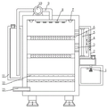 The top of the inner wall of the shell and the bottom of the inner wall are fixedly connected with the same electric heating pipe, the shell is internally and fixedly connected with a fan, one side of the box body is respectively and fixedly connected with a second liquid storage box and a disinfection box, the top of the disinfection box is fixedly connected with the bottom of the second liquid storage box, the bottom of the second liquid storage box is communicated with a liquid outlet pipe, one end of the liquid outlet pipe penetrates through the top of the disinfection box and is communicated with an atomizing spray head, the top of the inner wall of the disinfection box is fixedly connected with an infrared sensor, a solenoid valve is fixedly connected on the liquid outlet pipe, the two sides of the inner wall of the box body are fixedly connected with the same placing plate, the two placing plates are two, openings are respectively formed in the two placing plates, a filter plate is fixedly connected in each opening, the two filtering layers are fixedly connected to the two sides of the inner wall of the box body, and the two filtering layers are provided, the inner wall top fixedly connected with ultraviolet ray disinfection lamp of box, the quantity of ultraviolet ray disinfection lamp has two, one side of box has the chamber door through hinge swing joint.
