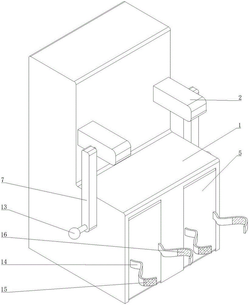In order to fix the lower limbs of the patient conveniently, the outer surface of the fixing band 14 on the left side of the same supporting plate 5 is provided with a female magic tape 15, and the inner surface of the fixing band 14 on the right side of the same supporting plate 5 is provided with a male magic tape 16 which can be bonded with the female magic tape 15.