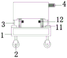 使用时首先将设备与外部电源链接,使第一减速电机4顺时针转动,第一减速电机4带动横轴5顺时针转动,横轴5带动第一齿轮6顺时针转动,第四齿轮6带动第五齿轮7逆时针转动,第五齿轮7带动螺纹杆8逆时针转动,螺纹杆8逆时针转动通过横板9使切割电机18向下运动到合适位置后,停止第一减速电机4,此时将第二减速电机12通电,此时第二减速电机12顺时针转动带动第一齿轮13顺时针转动,第一齿轮13带动第二齿轮14逆时针转动,第二齿轮14带动第三齿轮15顺时针转动,此时夹爪16向内侧运动将方管夹紧,此设计适用范围广,有益效果明显,益推广使用。