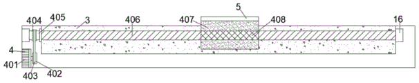 The two ends of the screw 406 are both provided with bearings 16, and the bearings 16 are both positioned on the inner side wall of the limiting block 2; the operation of the screw 406 is supported by the bearing 16 to maintain the normal operation of the device.