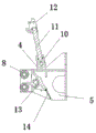 支撑副板5焊接在支撑主板1的底部上,导轮安装板6上开设有若干个第一螺栓孔,导轮架7上开设有若干个与导轮安装板6相匹配的第二螺栓孔,导轮架7通过螺栓安装在导轮安装板6上。
