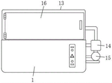 Referring to fig. 1 and 2, a plastic suction assembly is arranged above the breathable placement plate 7, a transparent cover 13 is arranged at the top of the plastic suction assembly, an opening and closing door 16 is arranged on the front surface of the transparent cover 13, the plastic suction assembly comprises a vacuum pump 9, an electric cylinder 10, a mold 11 and a conduit 12, the top of the vacuum pump 9 is fixedly connected with the inner top wall of the transparent cover 13, and the bottom of the vacuum pump 9 is fixedly connected with the electric cylinder 10;