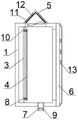 3. The foam pry control cabinet for fire fighting according to claim 1, characterized in that: toper cover (5) are fixed in switch board (1) top through the bolt, toper cover (5) and switch board (1) are linked together, toper cover (5) top both ends are fixed with dust screen (11) through the draw-in groove, dust screen (11) inboard veneer has waterproof ventilated membrane (12), radiator fan (10) are installed through the mounting bracket to toper cover (5) inside.