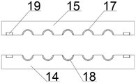 The side plate 2 is fixed on two sides inside the control cabinet 1 through bolts, a first clamping plate 14 is fixed on one side of the side plate 2 through bolts, clamping rings 16 are welded on the top and the bottom of the first clamping plate 14, a second clamping plate 15 is arranged on one side of the first clamping plate 14, arc-shaped clamping grooves 17 are formed in one sides of the first clamping plate 14 and the second clamping plate 15, and strong magnets 19 are embedded in two ends of one side of the first clamping plate 14 and the second clamping plate 15; the strong magnet 19 can fix the first clamping plate 14 and the second clamping plate 15 after being closed, and the signal wire is clamped and fixed through the arc-shaped clamping groove 17.