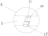 The moving mechanism is arranged in the base 1 and comprises a sliding plate 14, the sliding plate 14 is slidably connected to the inner side of the base 1, a round hole is formed in the upper surface of the sliding plate 14 and sleeved on the side surface of the fixed rod 12, the sliding position of the sliding plate 14 is locked without deviation, a square groove 10 is formed in one side of the base 1, a rocker 11 is rotatably connected to the inner side of the square groove 10, one end of the rocker 11 is rotatably connected with the sliding plate 14, the sliding plate 14 can be driven to slide in the base 1 by rotating the position of the rocker 11, the purpose of controlling the height of the sliding plate 14 in the base 1 is achieved, a locking plate 17 is arranged at one end of the rocker 11, a groove is formed in one side of the lower surface of the base 1, the locking plate 17 can be inserted into the groove by rotating the rocker 11, the position of a sliding plate 14 is locked, convenience is provided for the storage work of a pulley 16, the stability of a base 1 when the base 1 is placed is improved, a rotary disc 15 is rotatably connected to the lower surface of the sliding plate 14, the pulley 16 is rotatably connected to the inner side of the lower surface of the rotary disc 15, a spring 13 is arranged at one end of the sliding plate 14, one end of the spring 13 is arranged on the upper surface of the inner side of the base 1, and the spring 13 is sleeved on the side surface of a fixed rod 12, so that the spring 13 can push the sliding plate 14 to abut against the lower surface of the inner side of the base 1 through the spring 13 when the base 1 needs to move, the pulley 16 extends out of the base 1 to provide convenience for the movement of the base 1, when the base 1 needs to move, a locking plate 17 is firstly pulled out of a groove of the base 1 to unlock the sliding plate 14, the sliding plate 14 is pushed to abut against the lower surface of the inner side of the base 1 through the elasticity of the spring 13, and at the moment, the pulley 16 extends out of the inner side of the base 1 along with the sliding of the sliding plate 14, provide convenience for the removal of base 1, when base 1 placed, through rotating rocker 11 downwards pulling sliding plate 14 and removing to the inside upper end of base 1, when rocker 11 one end was parallel with base 1, lockplate 17 inserted base 1 recess department, with the position locking of sliding plate 14, pulley 16 was accomodate to base 1 inside along with sliding of sliding plate 14 this moment, increased the stability of base 1 when placing.