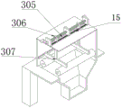 the other end of the top surface of the working box (201) is symmetrically welded with a support plate (301), the inner side of the support plate (301) is sleeved with a lead screw (302), one end of the lead screw (302) is connected with a connecting block (303) through a bearing, the other end of the lead screw (302) is connected with a rotating rod (304), a moving groove (305) is formed in the position, corresponding to the lead screw (302), of the top end of the working box (201), a moving block (306) is sleeved on the outer side of the lead screw (302), and a T-shaped positioning plate (307) is connected to the position, located on the inner side of the moving groove (305), of the bottom end of the moving block (306).