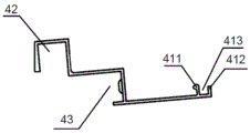 进一步的,所述收边线条4包括分别连接上下相邻两块所述墙面板的上连接部41和下连接部42,以及设于所述上连接部41和下连接部42之间的灯带槽43,所述一体成型的收边线条结构简单,能够同时衔接上下相邻的墙面板及设置灯带,使用方便。其中,所述上连接部41包括插接条411、与插接条411平行的立条412以及由两者构成的朝上的卡接槽413,所述墙面板3端部设有插接槽31,且所述插接槽31的一侧壁卡入所述卡接槽413。所述上连接部与上方墙面板通过相互插接实现稳定连接,同时拆装更为方便高效。而所述下连接部42具有卡接于所述墙面板3上端的朝下的卡槽结构,且所述墙面板上端及卡槽结构通过螺钉连接墙体,所述结构简单,螺钉不仅将墙面板稳定安装于墙体上,同时也使得下连接部与下方墙面板牢固连接。另外,所述灯带槽43的方向具体为朝向下方的墙面板,以完美隐藏灯带,确保美观度。