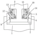 具体的,安装块3内设有传动槽15,传动槽15通过支撑架与转杆12相连接,转杆12两端均通过复位弹簧13与传动槽15相连接,且一端通过转轴与T形杆10相连接,另一端通过转轴与连接斜块9相连接,本实施例中起到便于安装的作用,同时连接处采连接处不仅平整度差异较小,滚轮滑动更加顺畅,还降低安装系数,安全性更高。