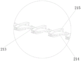 Preferably, as shown in fig. 2 and 3, the header 21 includes an auger 211, a header frame 212, a movable plate 213, a knife tooth 214 and a knife profile 215; the packing auger 211 is arranged behind the header 21 and is in transmission connection with the conveying device 3; the movable plate 213 is movably connected to the cutting table frame 212, the cutter teeth 214 are fixed on the movable plate 213, the cutter profile 215 is fixed on the cutting table frame 212, and the cutter teeth 214 are arranged in the gap between the cutter profile 215 and the cutter profile 215; the cutter teeth 214 move left and right under the traction of the movable plate 213, so that the forage crops are cut.