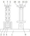 In the figure: 1. a base plate; 2. a support frame; 3. placing the plate; 4. a first motor; 5. a first guide roller; 6. a guide sleeve; 7. pressing a groove; 8. a second guide roller; 9. a second motor; 10. a winding shaft; 11. a limiting groove; 12. clamping a rail; 13. winding a sleeve; 14. a connector; 15. a limiting disc.
