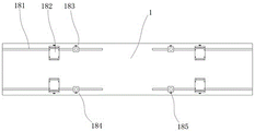 In another preferred embodiment of the present application, as shown in fig. 4-6, the positioning tool 18 includes two sets of positioning tools oppositely disposed at two ends of the support table 1 in the length direction, each set of positioning tool includes two slide rails 181 disposed along the width direction of the support plate, and one or a combination of a wedge-shaped positioning slider 182, a first leveling component 183, and a second leveling component 184 is correspondingly disposed on each slide rail 181 in a sliding manner; the first leveling component and the second leveling component respectively comprise a positioning sliding block and ejector rods with different heights, the positioning sliding block and the wedge-shaped positioning sliding block are provided with sliding grooves matched with the sliding rails at the lower sides, the positioning sliding block and the wedge-shaped positioning sliding block are provided with positioning screws 185 at the outer sides, and the position adjustment of the wedge-shaped positioning sliding block and the leveling component on the sliding rails can be realized through the positioning screws.