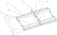 One end of the main body 1 is provided with a collecting groove 5, and the lower surface of the collecting groove 5 and the lower surface of the main body 1 are in the same plane. Set up collecting vat 5, scrape into collecting vat 5 with unnecessary cement, avoid extravagant, it is further, one side lower surface that main part 1 corresponds collecting vat 5 is equipped with the breach, and scraper blade 3 is strickleing off the in-process, will supply water cement to scrape into collecting vat 5 through the breach. The collecting gutter 5 is detachably connected to the main body 1 by bolts.