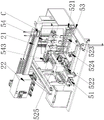 完成所述料篮4上所有所述产品限位槽7的产品装载后,所述第二直线移动机构51带动所述活动载板521与所述对接导轨53对接,所述驱动电机522驱动若干所述传送滚轮523带动所述料篮4通过所述对接导轨53滑动至外部的运输机构上。