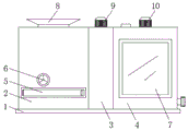 6.根据权利要求1所述的一种绿色建筑施工用高效的再生混凝土生产装置,其特征在于:所述粉碎箱(2)内壁的底部与输送箱(3)内壁的底部均倾斜设置有第二导流板(18),所述粉碎箱(2)正表面的底部通过合页活动连接有箱门(5),所述搅拌箱(4)的正表面镶嵌有观察板(7)。
