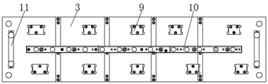 作为本实用新型的一种技术优化方案,通过设置翻孔凸模组9和翻孔凹模组12的数量相同,能够对工件进行自动翻转,避免工件出现需要人工手动翻转的现象。