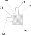 Here, the external corner fitting 2 is provided with an external corner sealing member 7, and the external corner sealing member 7 includes an external corner square plate 71 for connecting two external corner portions of the wall panel 5, a first external corner U-shaped plate 72 disposed at an external corner of the external corner square plate 71 and extending into the fastening groove 51 of the first wall panel 5, a first external corner snap-gauge 73 disposed at an external corner of one end of the first external corner U-shaped plate 72 away from the external corner square plate 71 and extending inside the second fastening groove 53 of the first wall panel 5, a second external corner U-shaped plate 74 disposed at an external corner of one end of the second external corner U-shaped plate 74 away from the external corner square plate 71 and extending inside the second fastening groove 53 of the second wall panel 5.