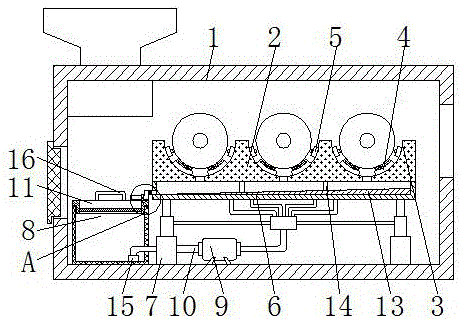 As a technical optimization scheme of the utility model, the handle 16 is arranged, so that a user can conveniently lift the filter box 11, the phenomenon that the filter box 11 is difficult to pull is avoided, and the practicability of the filter box 11 is improved.