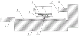 图中:1-底座,2-伺服电机,3-导轨,4-螺杆,5-冷却液喷射管,6-活动座,7-火车制动缸,8-滑轨,9-丝杆,10-工件支撑板,11-刀头动力机构,12-刀头。