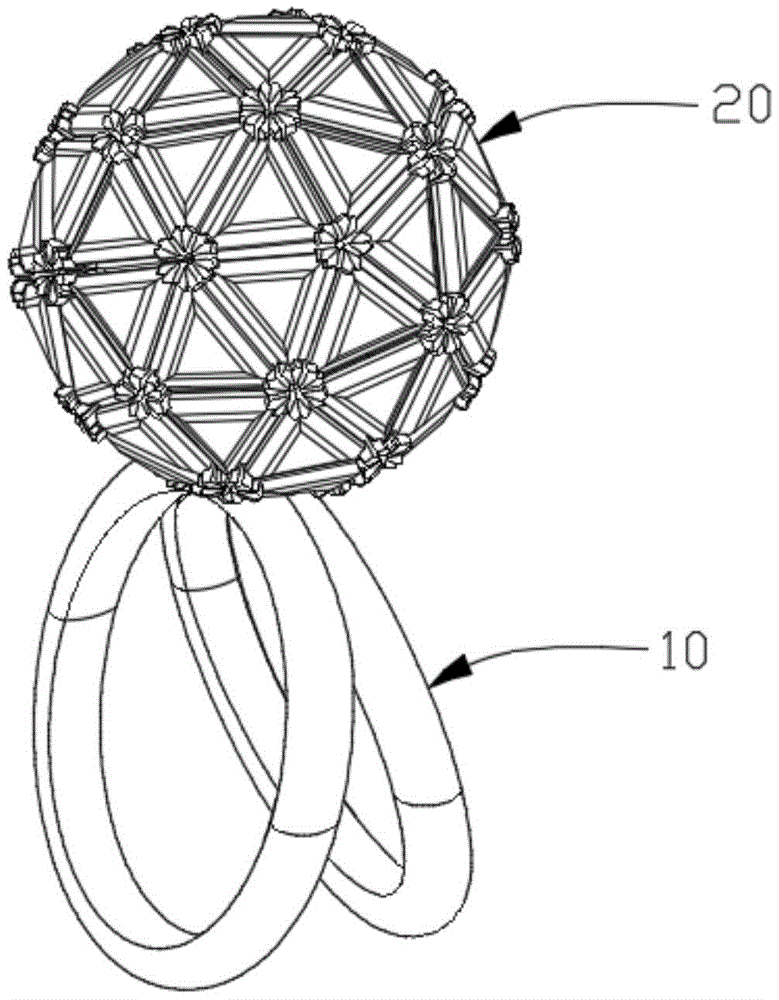 图1是本实用新型一种带球体饰物的戒指的整体结构示意图。FIG. 1 is a schematic diagram of the overall structure of a ring with spherical ornaments according to the present invention.