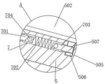 在另外一个实施例中,如图5所示,限位凹槽7内部活动安装有一号限位插销701,一号限位插销701一侧端面固定连接有回位弹簧702,回位弹簧702另一端固定连接有二号限位插销703,一号限位插销701与二号限位插销703正表面均固定安装有位移把手704。