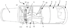 可选地,所述驱动装置包括驱动电机41和传动齿轮42,所述驱动电机41固定在所述阀体1内部,所述传动齿轮42套装在所述驱动电机41的输出轴上,所述内连通风道11的外侧设有与所述传动齿轮42相啮合的旋转齿111。