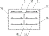 3. a small-volume equipment turnover mechanism; 31. a movable turnover box; 32. an access door; 33. rotating the base; 34. a mounting frame; 35. a support bar; 36. a rubber conical ring; 37. a position-limiting sponge cushion;