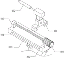 Referring to the drawings, the device further comprises an adjusting mechanism 4, the adjusting mechanism 4 is arranged on the upper surface of the first telescopic rod 3, the adjusting mechanism 4 comprises a sliding block 401 and a punching device 402, the sliding block 401 is connected to the top of the first telescopic rod 3 in a sliding mode, the punching device 402 is arranged on the upper surface of the sliding block 401, the adjusting mechanism 4 further comprises a motor 403, a threaded rod 404 and a limiting strip 405, the motor 403 is arranged on the top of the first telescopic rod 3, the threaded rod 404 is arranged on one side of the motor 403, the limiting strip 405 is sleeved on the outer surface of the threaded rod 404 in a rotating mode, the motor 403 is fixedly connected to the upper surface of the supporting plate 302, the threaded rod 404 is connected to the inside of the sliding block 401 in a threaded mode, the limiting strip 405 is fixedly connected to the upper surface of the supporting plate 302, and the sliding block 401 and the punching device 402 are adjusted through the motor 403, the threaded rod 404 and the limiting strip 405.