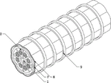 图中:1、米字型支撑架;2、导体绝缘层;3、导体;4、防水填充层;5、内衬层;6、耐高温填充层;7、防腐弧瓣支撑层;8、阻燃层;9、抗压支撑环。