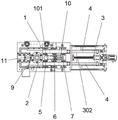 The bottom surface of the mounting seat 1 is also provided with an ejection device 201 for ejecting a workpiece on the die 2, the ejection device is arranged for ejecting the workpiece after extrusion molding out of the die 2, and the workpiece is prevented from being combined with the die 2, and the ejection device belongs to the content of the prior art, so that the specific structure and the working principle of the ejection device are not further disclosed.